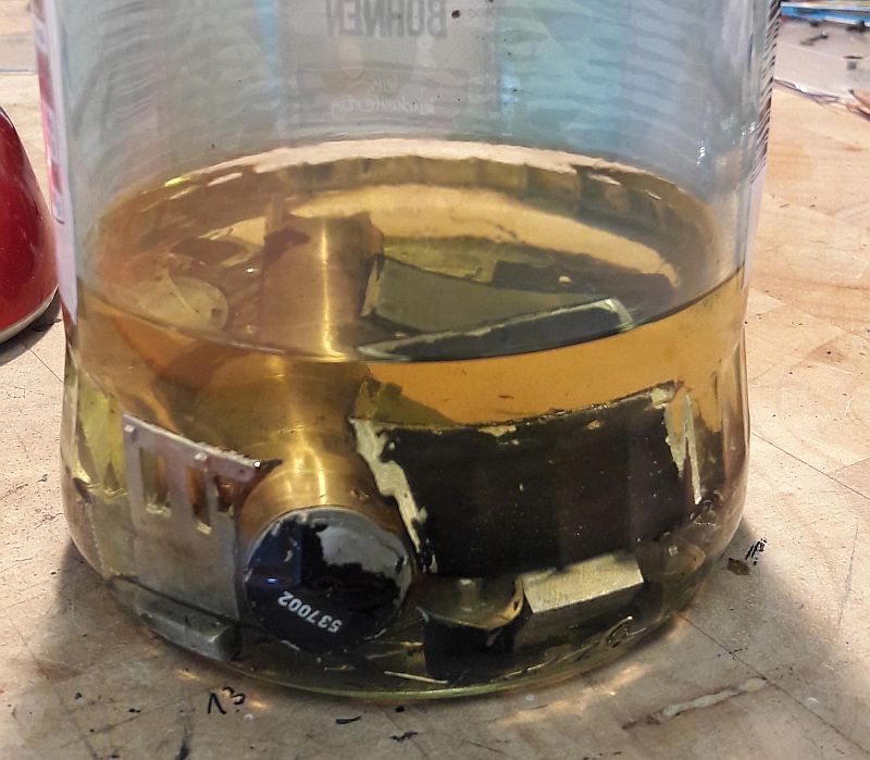 Die Lok wurde zerlegt und die Farbe mittels